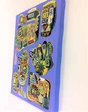 アクリルガッシュ、インク、オイルパステル、キャンバス