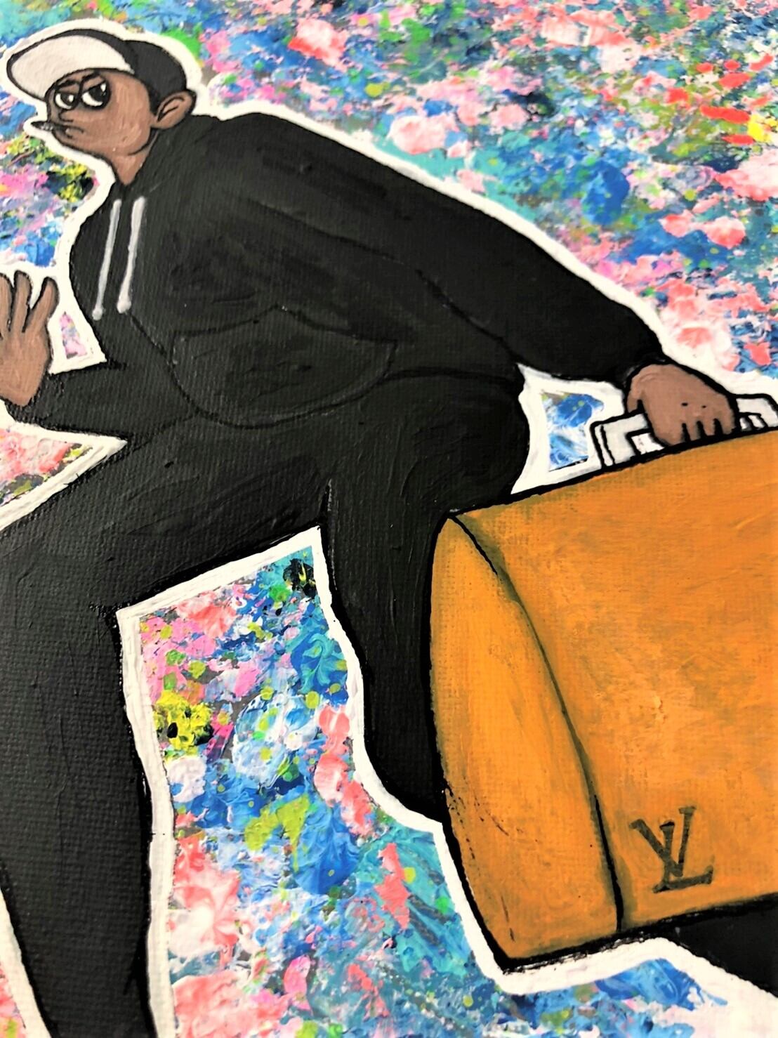 「リクルーター」(おしゃれ、ストリートファッション、スウェット、グラフィティ、黒セットアップ、ヴィトン)