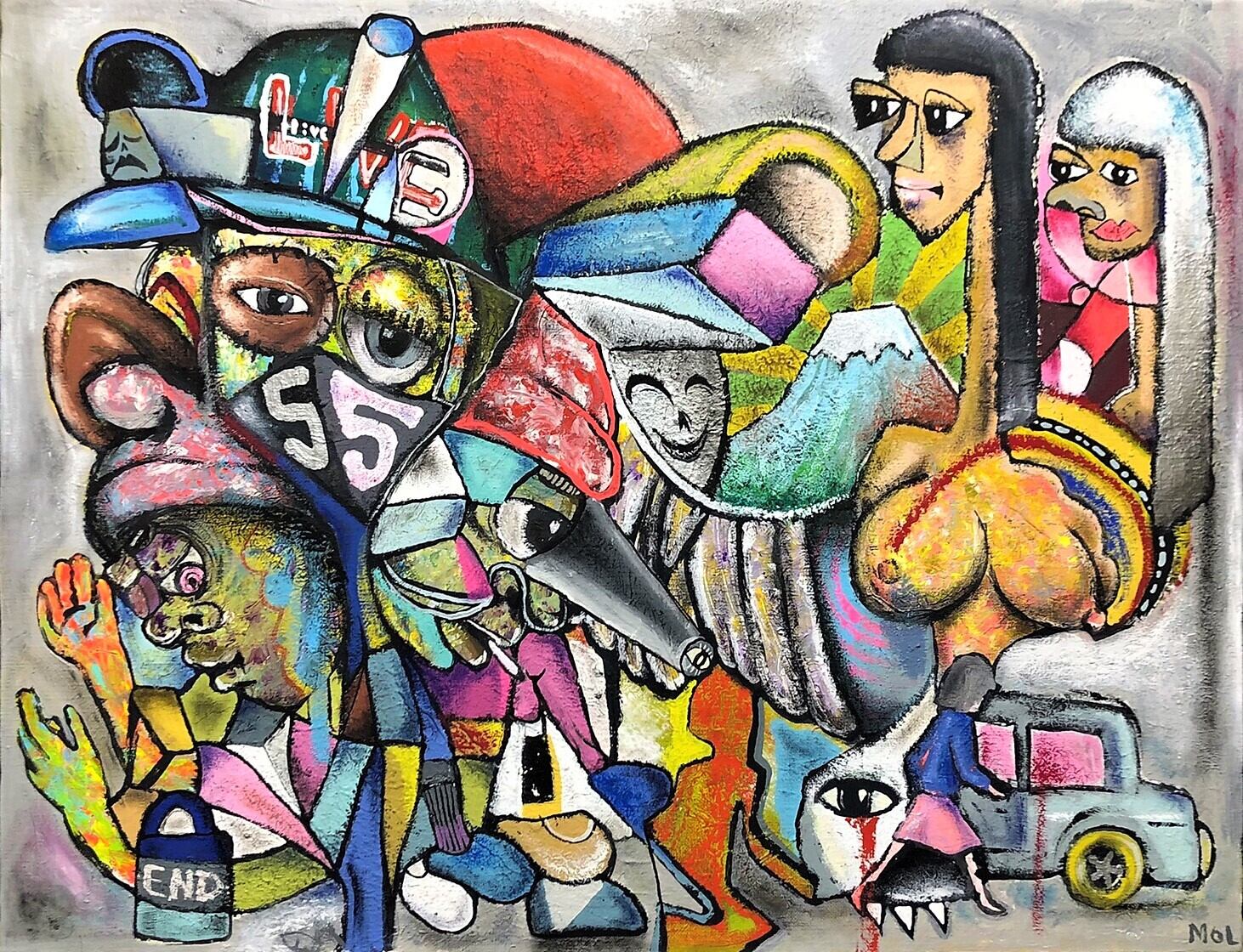 何層も絵の具を重ねて時間をかけて描いた作品で