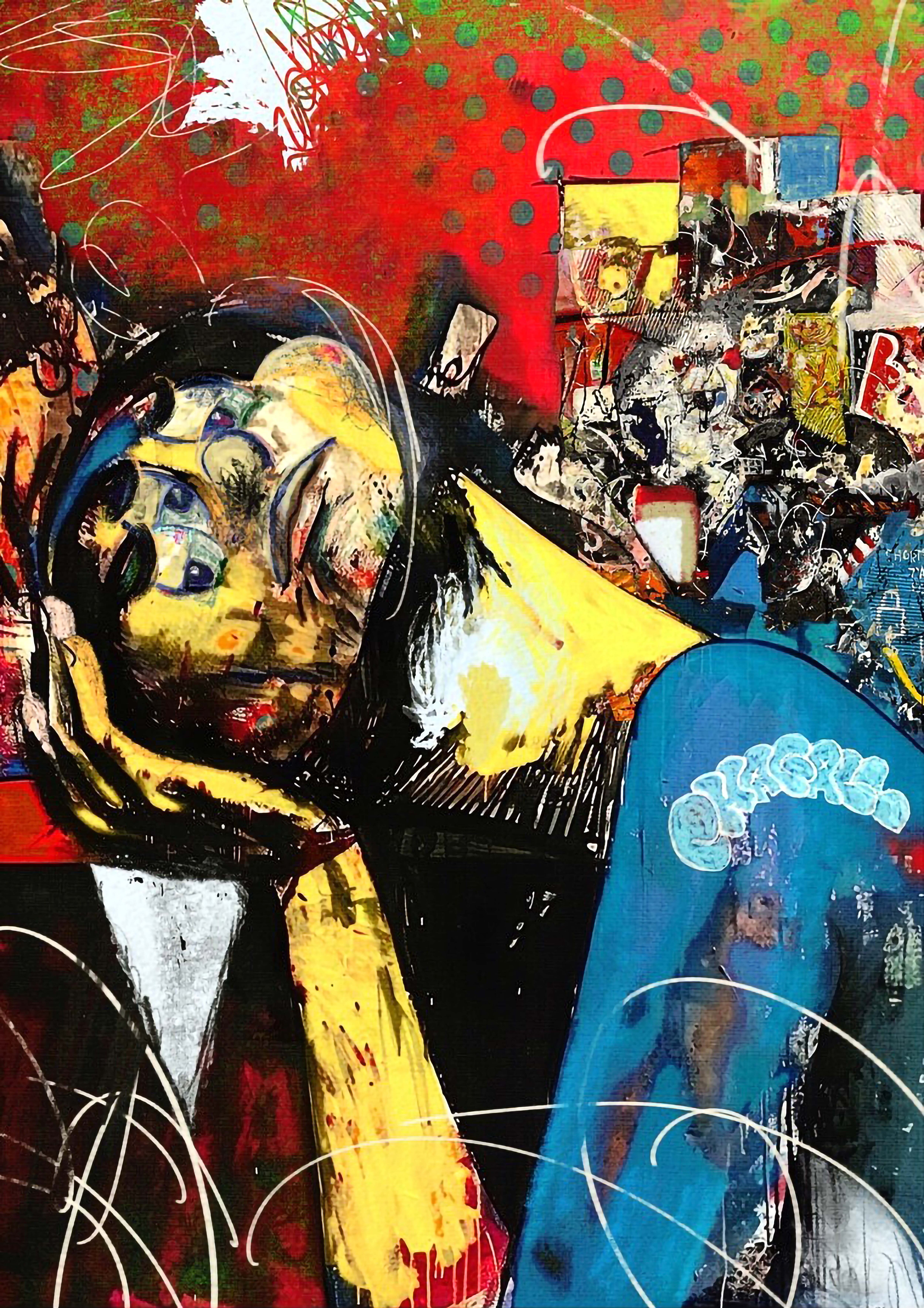 つよめの赤青黄色と、こどもが使いそうな色を大胆に配した「サーカス」(風景画)の色のみをオマージュしてアシンメトリーのポートレート風にしました。